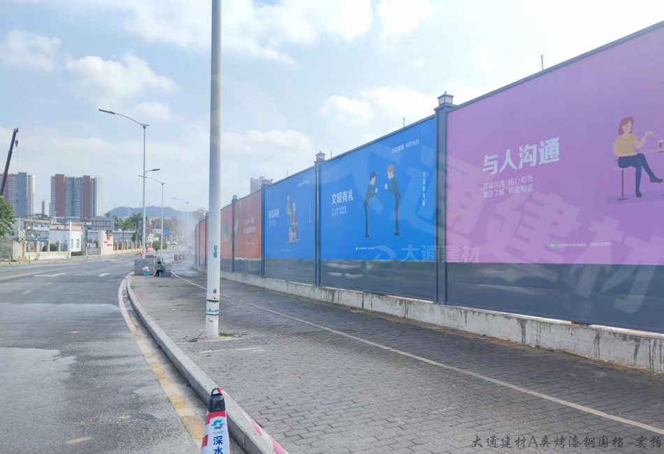 烤漆鋼圍擋a款-深圳北站市政圍擋施工工程案例-A/B/C類圍擋-深圳市大通建材有限公司鋼圍擋生產(chǎn)定制廠家