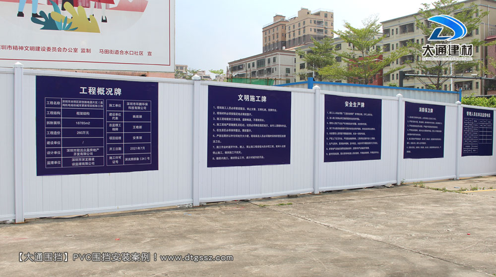 深圳光明新區(qū)PVC圍擋安裝案例,由深圳市環(huán)鵬環(huán)保科技有限公司施工的項(xiàng)目,光明區(qū)舊房拆除工程項(xiàng)目,采用深圳市大通建材有限公司PVC圍擋來(lái)做安全防護(hù)圍擋,拆除面積總占地18785平方米,PVC圍擋安裝總長(zhǎng)度230米。