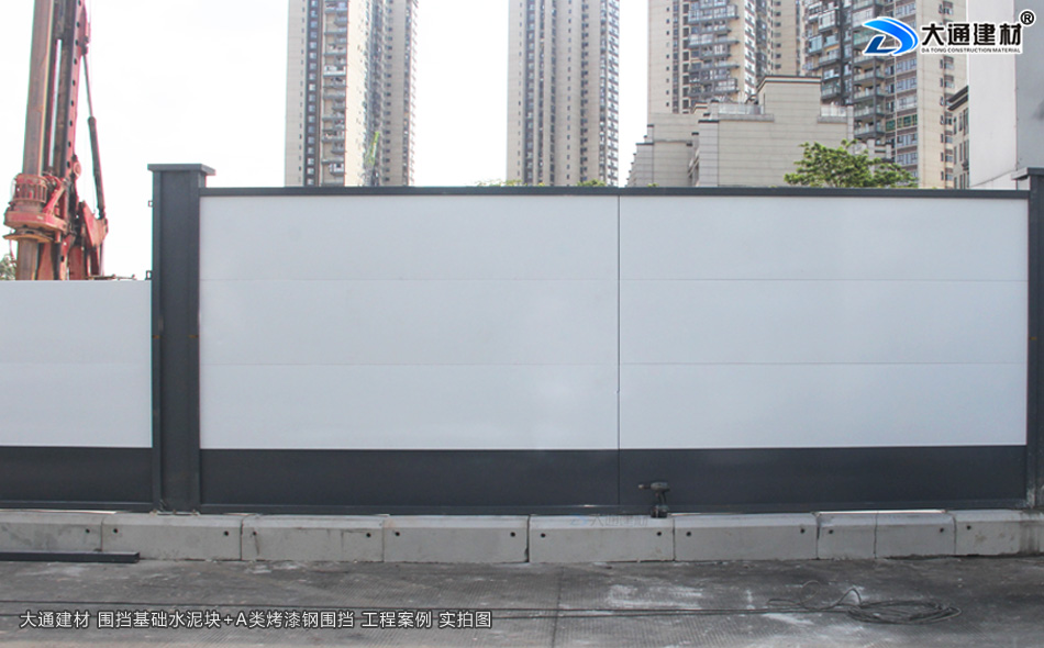 上述展示 深圳市大通建材的圍擋基礎墩與圍擋的安裝過程