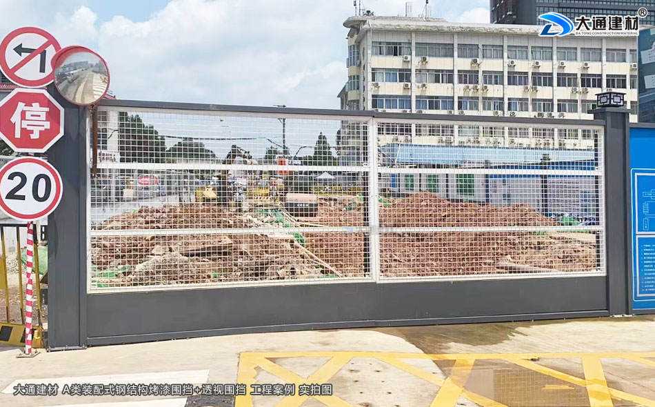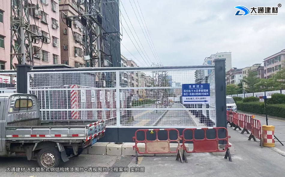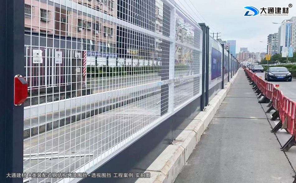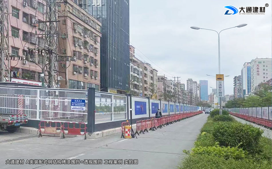 大通建材 A類鋼結(jié)構(gòu)烤漆圍擋+工地透視圍擋 應(yīng)用于深圳光明區(qū)市政道路整改工程項(xiàng)目中