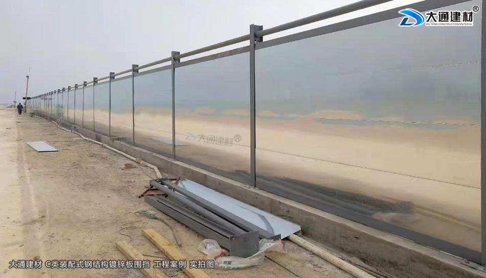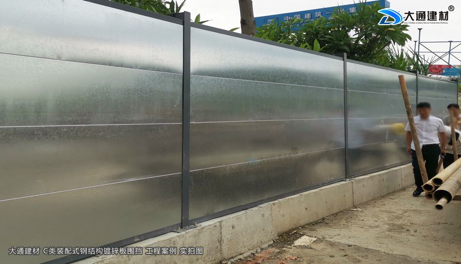 東莞建設(shè)工程項(xiàng)目選用深圳市大通建材有限公司生產(chǎn)批發(fā)的鋼結(jié)構(gòu)圍擋C類,裝配式圍擋安裝方便,鍍鋅鋼板2.4米高符合工地施工圍擋要求標(biāo)準(zhǔn)