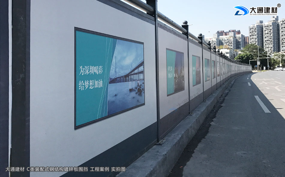 深圳市大通建材深圳標(biāo)準(zhǔn)圍擋鍍鋅板C款是一款新型的裝配式鋼結(jié)構(gòu)圍擋,符合市政新標(biāo)準(zhǔn)、拆裝方便、結(jié)構(gòu)牢固、抗風(fēng)力達(dá)到10級(jí)、安全性高,圍擋生產(chǎn)源頭廠(chǎng)家直接銷(xiāo)售、價(jià)格更便宜。