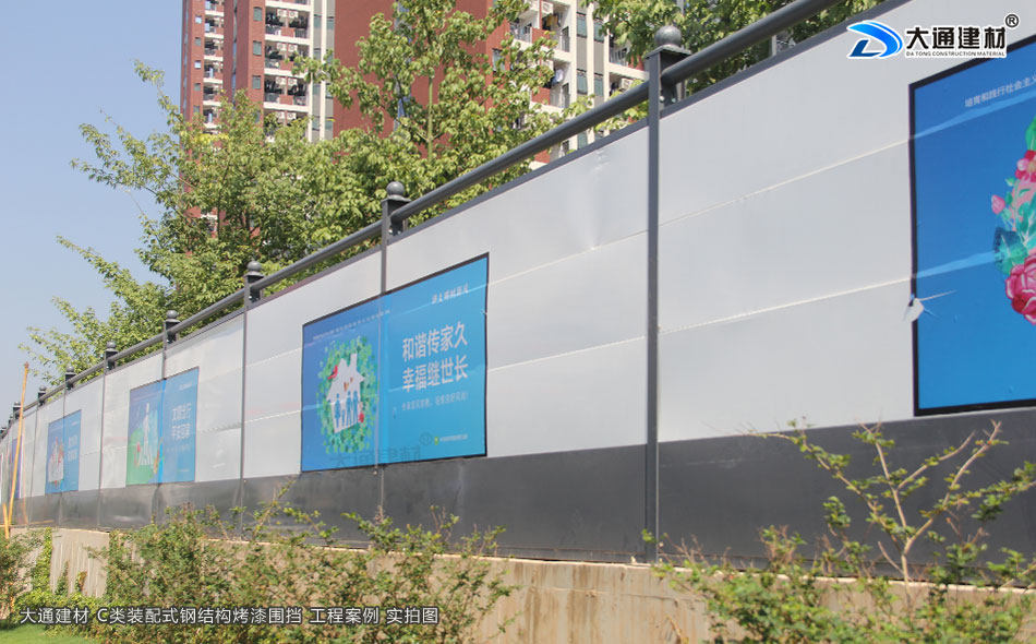 廣東省深圳市南山區中山大學校區西門公交站附近路段采用大通建材烤漆C款圍擋進行隔離防護,安裝好的大通圍擋實拍圖如下展示