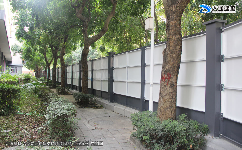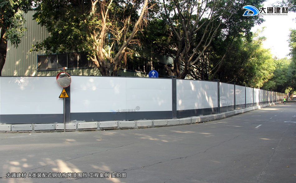 二、大通建材深圳市鋼結構施工圍擋A款使用的材料是烤漆鋼材能保證圍擋安全穩固、整潔美觀、環保。工程項目施工工地,可按工程進度分段設置圍擋或按規定使用統一的連續性圍擋護欄設施。施工單位不得在工地施工圍擋外堆放建筑材料、垃圾、工程渣土等物品。在經批準臨時占用的區域,應嚴格按批準的占地范圍和使用性質存放、堆卸建筑材料或機具設備,臨時區域四周應加設至少高于1m的臨時圍擋護欄。