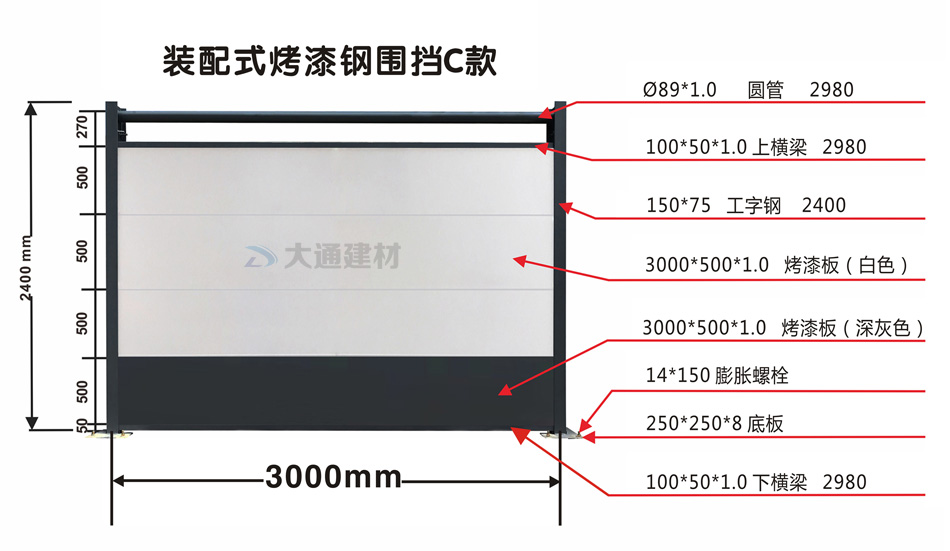 深圳市大通建材有限公司是一家專(zhuān)業(yè)的裝配式C類(lèi)烤漆板鋼結(jié)構(gòu)圍擋生產(chǎn)批發(fā)源頭廠家,鋼圍擋品質(zhì)有保障,安全穩(wěn)固,廠家直銷(xiāo) 沒(méi)有中間商賺差價(jià),批發(fā)價(jià)格低于同行10%,貨源充足,常規(guī)規(guī)格下單后即可送貨安裝;特殊要求可以來(lái)樣或來(lái)圖定制生產(chǎn),有專(zhuān)業(yè)生產(chǎn)團(tuán)隊(duì),能快速生產(chǎn)出符合您需求的烤漆圍擋,大通建材鋼結(jié)構(gòu)烤漆圍擋,值得你選擇與信賴(lài)。咨詢(xún)?cè)斍榧翱焖佾@取報(bào)價(jià) 請(qǐng)致電13826562448 加微信號(hào)dt13826562448