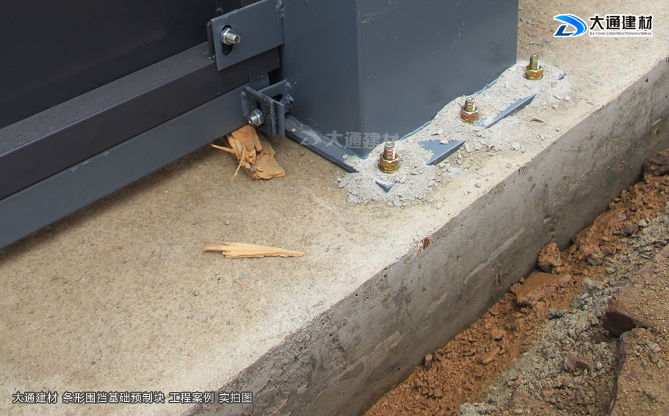 上圖展示的是鋼結構圍擋立柱與條形圍擋基礎預制塊 安裝效果