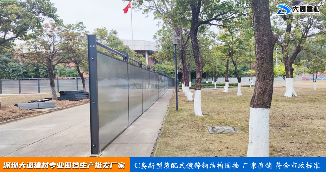 大通建材C類裝配式鋼圍擋鍍鋅款,拆裝便利、快速拼裝、結構牢固、安全性高,已廣泛應用于深圳、東莞、惠州、廣州、汕頭等地區的工程施工項目中