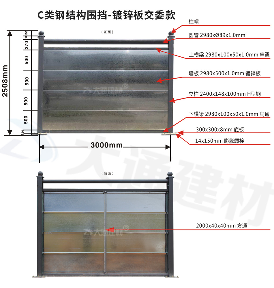 深圳大通建材 C類鍍鋅板鋼結構圍擋-交委款 產(chǎn)品特點