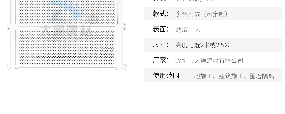 深圳市大通建材有限公司是一家集研發、生產、安裝、服務于一體的綜合性圍擋廠家,公司主營產品鋼圍擋、鋼結構圍擋、PVC圍擋、施工圍擋、市政圍擋、工地圍擋、烤漆鋼圍擋,官網:http://m.ddomelt.cn/ ,銷售熱線:138 2656 2448