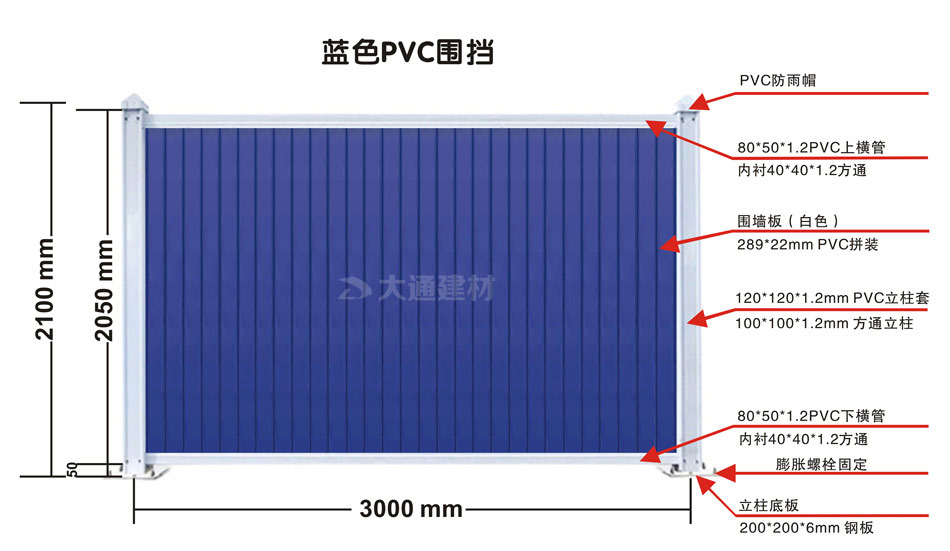 深圳市大通建材藍色PVC圍擋批發 工程施工安全圍擋 產品特點: